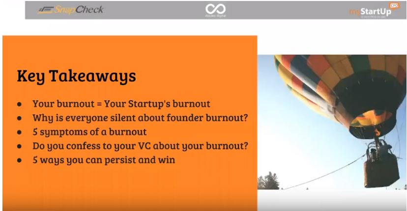 Watch Sandeep Shroff of myStartUpCFO, Ken Kruszka of SnapCheck and Gaurav Rastogi of Doloop Digital in a candid conversation on the topic of Startup Founder Burnout – How to Persist and Win. Key takeaways from this discussion include: